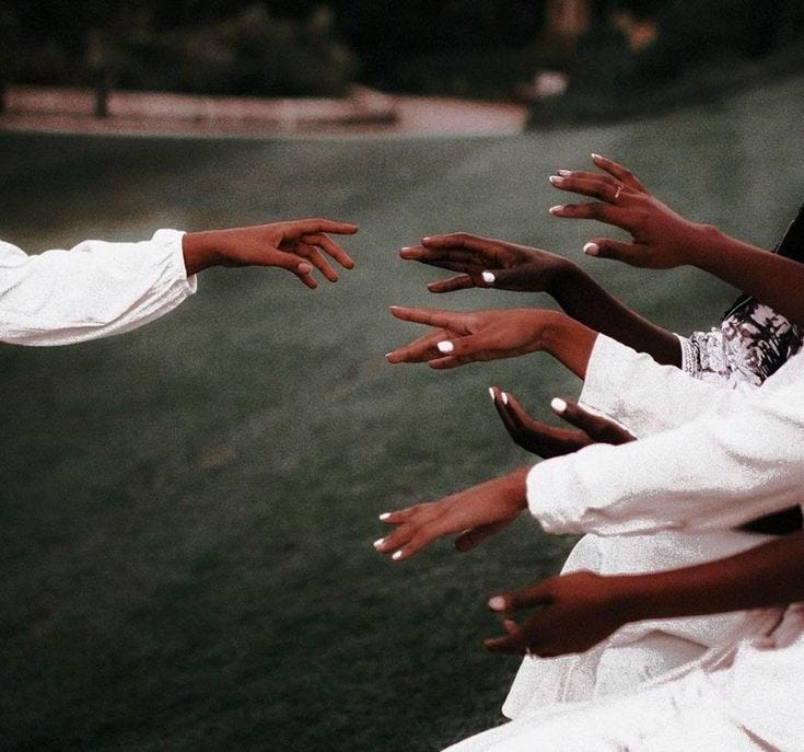 I want to keep writing about the hands that saved me, and how important it was for me that the hand I was holding in the hospital was the hand of a Black woman. I recently shared this testimony with her, with more words that I can share here. After all, I did squeeze her hand, I am sure, past the point of comfort — I know she is a part of my gentle landing. There were so many things I was certain that I could share with her that would not shock her. The burden of contextualizing was lifted.