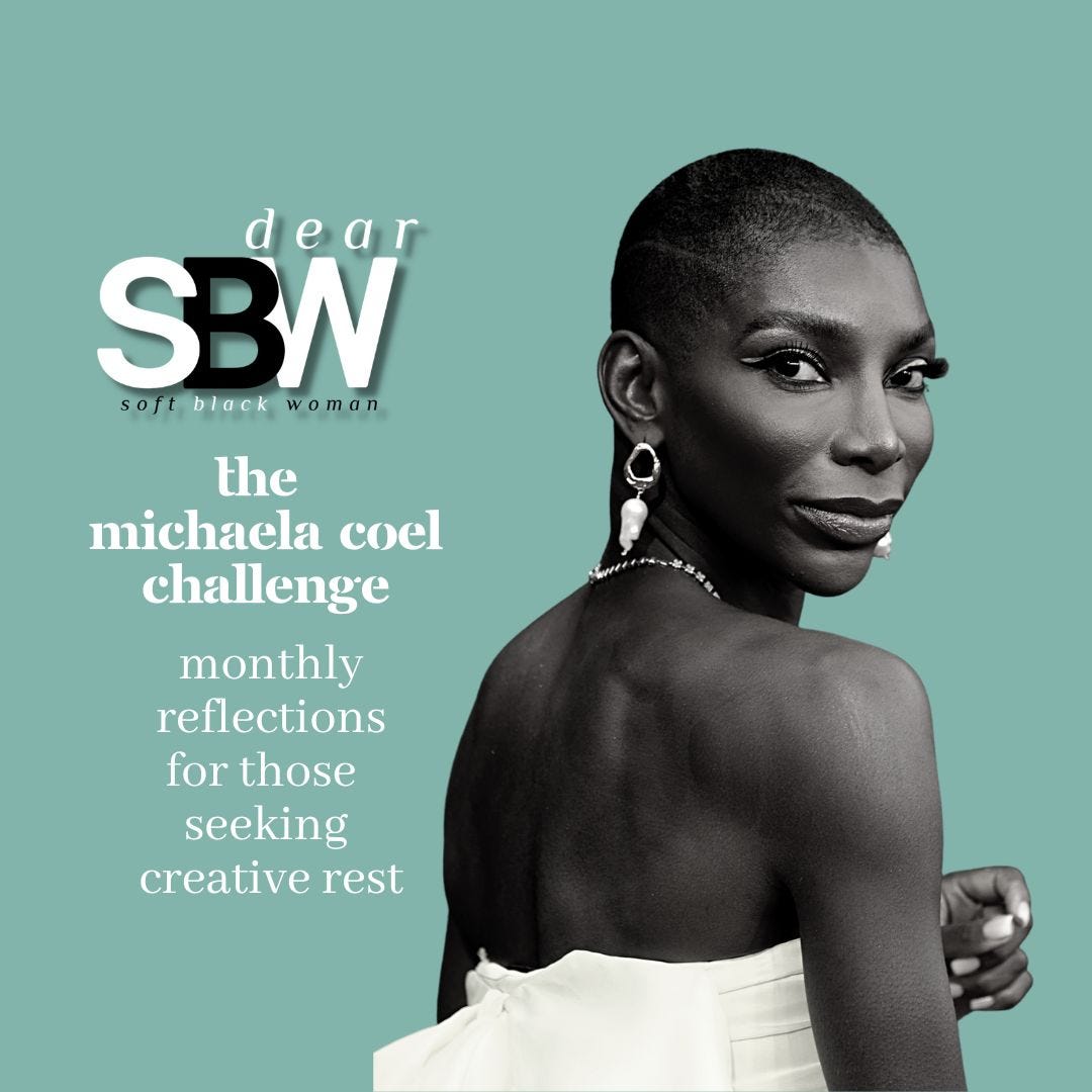 I am holding that what makes Michaela Coel's challenge so hard (so hard that she says—"I dare you"—is the fear of silence and quiet. The fear that I will look inward and find nothing of value. The fear that the world (and my people in it) will leave me behind. The fear that when I finally figure out what I want to say, no one will listen. The fear that it will be hard and uncomfortable, as she so rightly names, to say the things that are burning inside me to speak aloud.