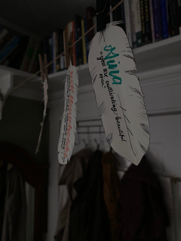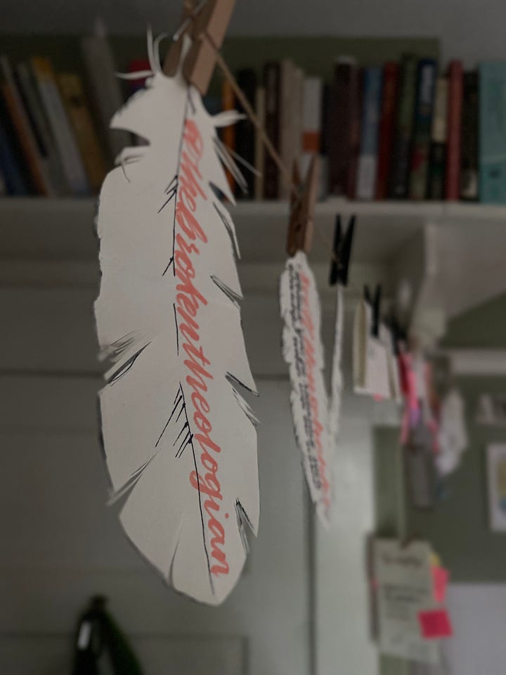 Trying out a new thing: I will make a feather for every gift (regardless of amount) on Buy Me a Coffee. These feathers will help me have a visual reminder of this supportive community. Right now, I have a goal of collecting 220 feathers ($1,100) in order to pay off medical bills. Here are my most recent feathers to fall into the jar:
