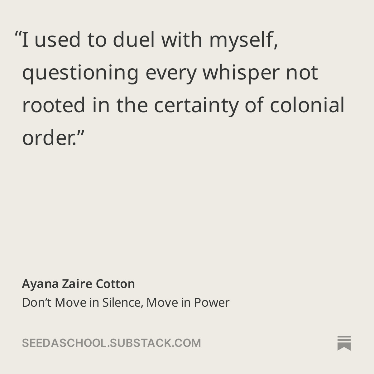 I attended Ayana’s Worldbuilding workshop a few weeks ago and its been on my mind ever since. I was captivated by this post, where they unpack what “Audacious desire” looks like, drawing from Audre Lorde and Octavia Butler. Check out this post for some powerful affirmations. I have noticed my approach to being online has shifted because of the workshop and a desire for my words to connect to the lineage of Black feminist writings while resisting the urgency shaped by capitalism.