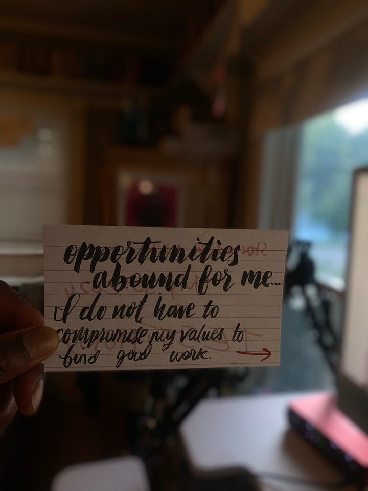 Opportunities abound for me. I do not have to compromise my values to find good work. 🙌🏾🙌🏾🙌🏾✊🏾✊🏾✊🏾
