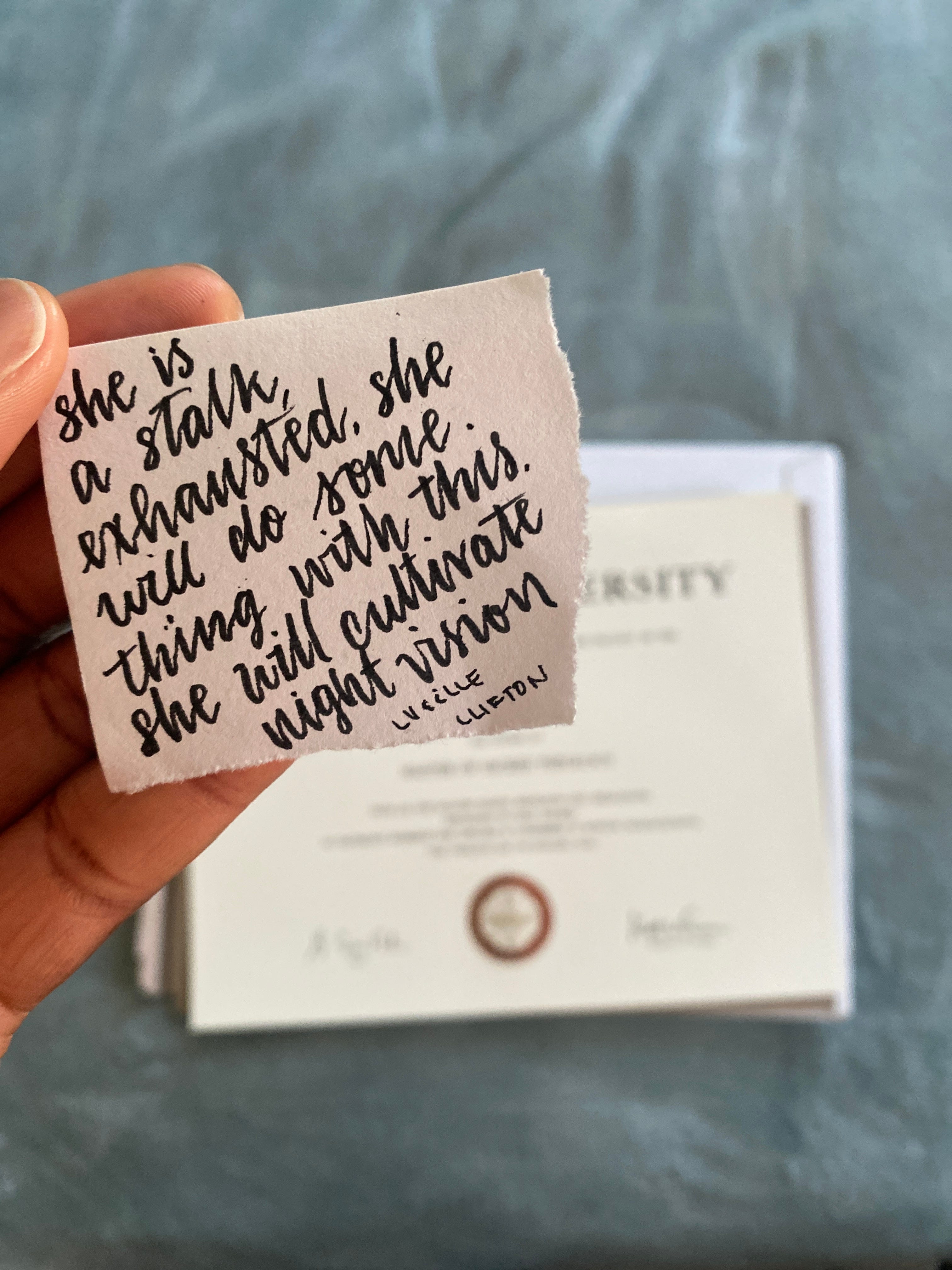 Some part of me is writing to remember how I got here…from writing lines to reading between them—to ignoring them altogether or allowing them to serve as guides where they feel compatible for making something beautiful. I did not get here without breaking a few rules…and a bit of mourning as I held on to the truth that I would write lines to find my way back to them.